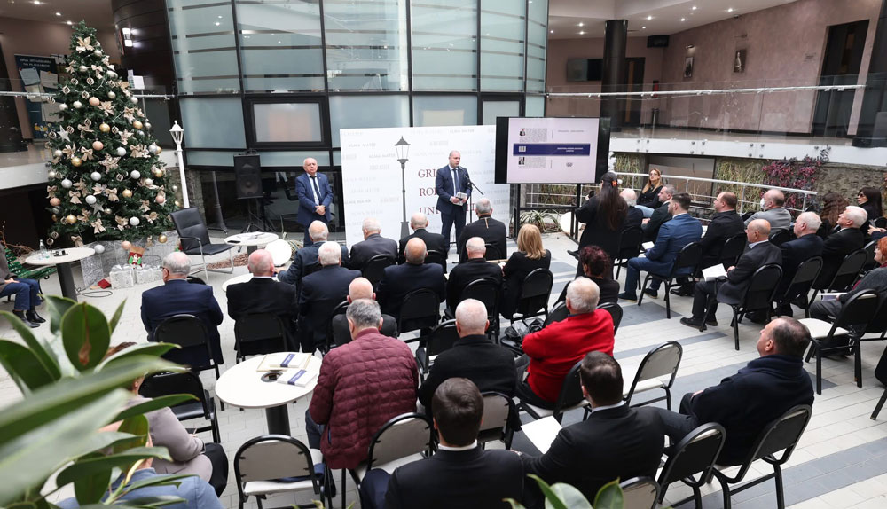 დამსწრე საზოგადოებას მიესალმა მონოგრაფიის თანაავტორი, საქართველოს განათლების მეცნიერებათა აკადემიის პრეზიდენტი, გრიგოლ რობაქიძის სახელობის უნივერსიტეტის რექტორი, პროფესორი მამუკა თავხელიძე.