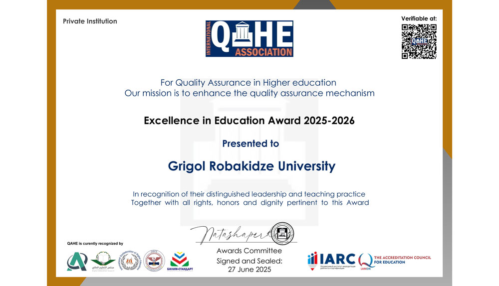სკოლამდელი და უმაღლესი განათლების ხარისხის უზრუნველყოფის საერთაშორისო ასოციაციამ (International Association for Quality Assurance in Pre-Tertiary and Higher Education –(QAHE) გრიგოლ რობაქიძის უნივერსიტეტს მიანიჭა „ბრწყინვალების ჯილდო განათლებაში“. (“Excellence in Education 2025-26 Award”).