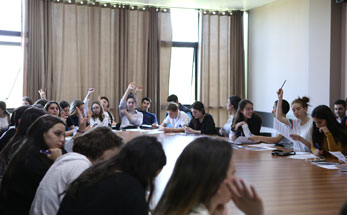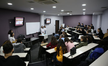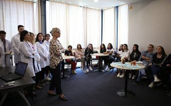 მედიცინის სკოლის სტუდენტების შეხვედრა სკოლის მოსწავლეებთან.