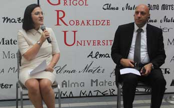 საგარეო საქმეთა მინისტრი მაია ფანჯიკიძე გრიგოლ რობაქიძის უნივერსიტეტში