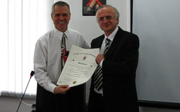 უნივერსიტეტის რექტორმა პროფესორმა მამუკა თავხელიძემ დამსწრეთ გააცნო აკადემიური საბჭოს გადაწყვეტილება ბატონი კრის ესკრიჯის საპატიო პროფესორად არჩევის შესახებ და გადასცა პროფესორის ატესტატი. კრის ესკრიჯმა მადლობა გადაუხადა აკადემიურ საბჭოს და გამოთქვა იმედი მომავალი თანამშრომლობისა.