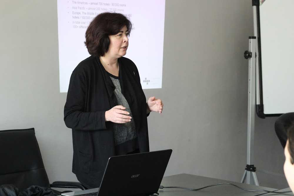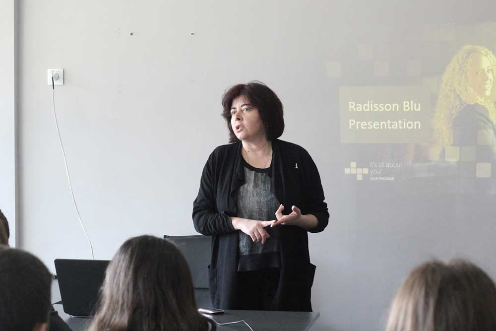 უნივერსიტეტის დასაქმების ცენტრის მხარდაჭერით, ბიზნესისა და მართვის სკოლის ტურიზმის მიმართულების სტუდენტებთან სტაჟირების პროგრამის შესახებ პრეზენტაცია გამართა „რედისონ ბლუ ივერია“-ს ადამიანური რესურსების მენეჯერმა ქალბატონმა ეკატერინე ლომიძემ.