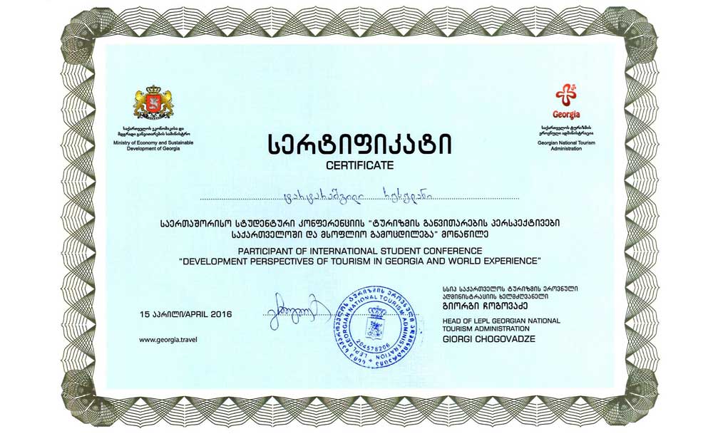2016 წლის 15 აპრილს, საგამოფენო ცენტრ „ექსპო ჯორჯიაში“ ჩატარდა საერთაშორისო სტუდენტური კონფერენცია თემაზე - ტურიზმის განვითარების პერსპექტივები საქართველოში და მსოფლიო გამოცდილება, რომელშიც მონაწილეობა მიიღო გრიგოლ რობაქიძის სახელობის უნივერსიტეტის ბიზნესისა და მართვის სკოლის ტურიზმის პროგრამის სტუდენტმა რუსუდან ტარტარაშვილმა.