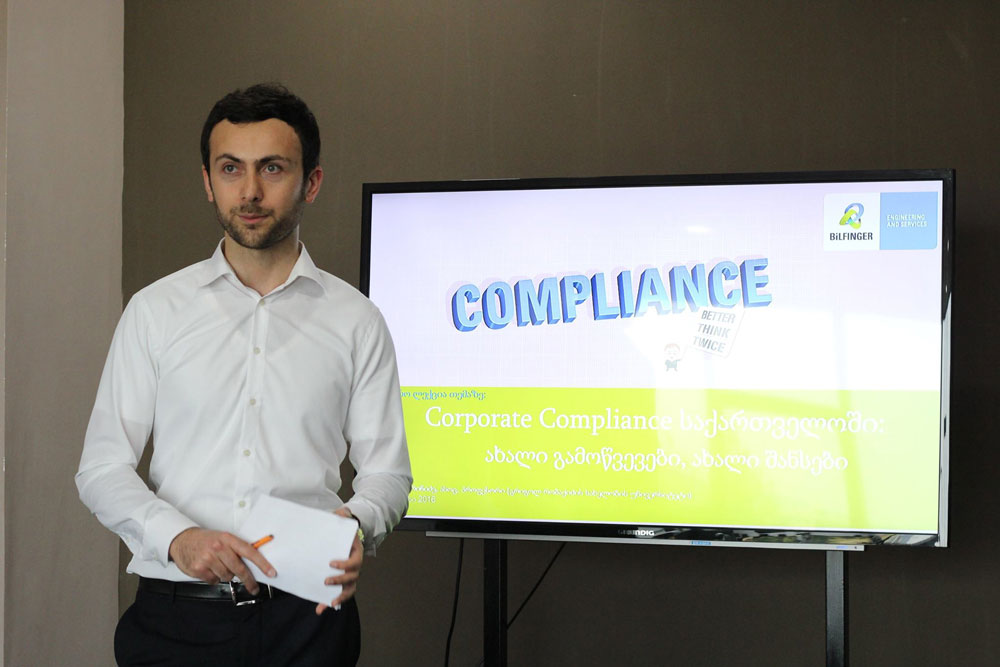 ბატონმა გიგამ წარმოაჩინა ქართული სამართლის სისტემაში კორპორაციული შესაბამისობის ინტეგრირების აუცილებლობა, განიხილა Compliance Management System-ის უპირატესობები და მისი პრაქტიკაში აღსრულების პრობლემატიკა.