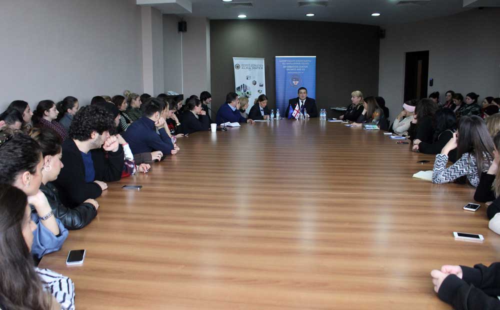 საგარეო საქმეთა მინისტრის მოადგილე გიგი გიგიაძე შეხვდა სტუდენტებს. თემა ევროპასთან თანამშრომლობის სოციალურ-პოლიტიკურ და ეკონომიკურ ასპექტებს მოიცავდა. ბატონმა გიგიმ ვრცლად მიმოიხილა ქვეყნის საგარეო პოლიტიკის ძირითადი მიმართულებები, ისაუბრა სამინისტროს მუშაობის სპეციფიკის შესახებ. სტუდენტთა განსაკუთრებული ინტერესი გამოიწვია ვიზალიბერალიზაციის საკითხებმა, საზღვარგარეთ სწავლის პერსპექტივებმა და სხვ.