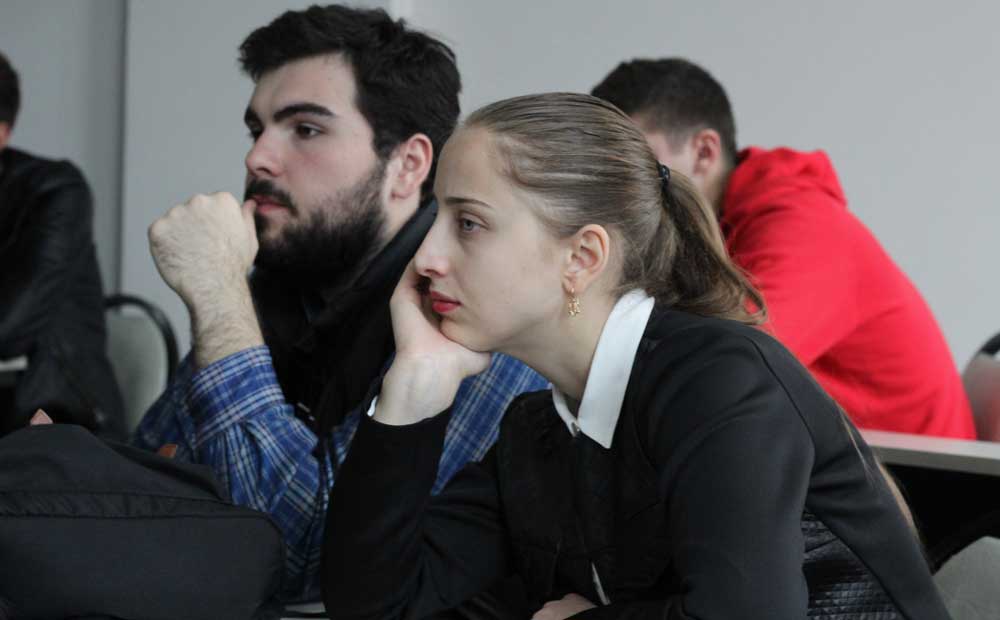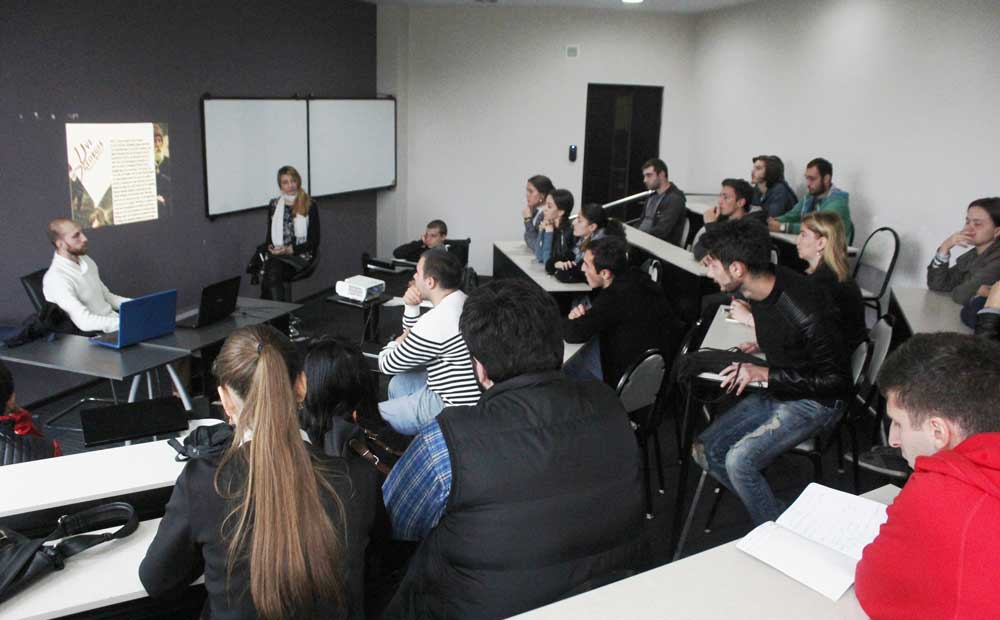104-ე აუდიტორიაში შედგა ბიზნესისა და მართვის სკოლის ტურიზმის პროგრამის სტუდენტთა შეხვედრა ამავე პროგრამის 2015-2016 სასწ. წლის კურსდამთავრებულ გიორგი სიხარულიძესთან, რომელიც ამჟამად მუშაობს ტურისტული კომპანია ლაივ ჯორჯია-ს გაყიდვების დეპარტამენტის ხელმძღვანელად. სტუმარმა ისაუბრა მიმდინარე პროექტებზე, ტურიზმის ბიზნესის განვითარების თავისებურებებზე, შემდგომი დასაქმების შესაძლებლობებსა და სამომავლო გეგმებზე - აუდიტორიას გაუზიარა პირადი გამოცდილება ტურისტული კომპანიის მართვის და ტურპაკეტების შექმნის შესახებ.