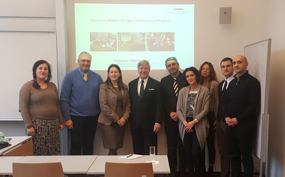 დელეგაციის მონაწილეები შეხვდნენ ბუცერიუსის სამართლის სკოლის ყოფილ რექტორს, პროფესორ კარსტენ შმიდტს, ჰამბურგის უმაღლესი სამხარეო სასამართლოს მოსამართლეს დოქტორ ფრანკ თეეგეს, ბუცერიუსის სამართლის სკოლის დეკანს პროფესორ კლიფორდ ლარსენს, ჰამბურგის უნივერსიტეტის სამართალმცოდნეობის ფაკულტეტის საერთაშორისო საქმეთა ინსტიტუტის ევროპის სამართლის კათედრის პროფესორს, ევროპული ინტეგრაციის ინსტიტუტის აღმასრულებელ დირექტორს ჰამბურგში, ვიცე დეკანს, პროფესორ მარკუს კოტცურს.