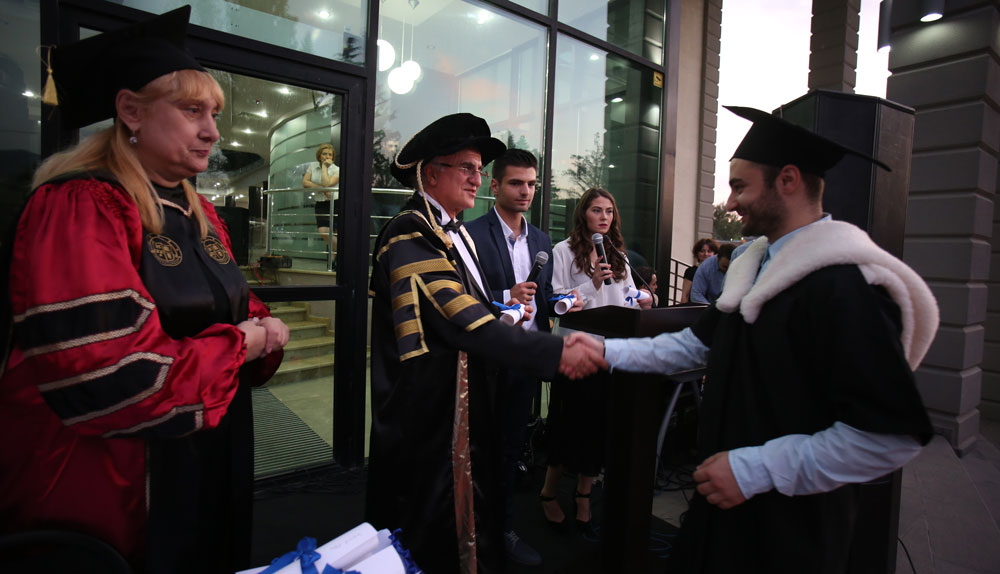 უნივერსიტეტის ეზოში ჩატარდა სამივე საგანმანათლებლო საფეხურის - ბაკალავრიატის, მაგისტრატურის, დოქტორანტურის კურსდამთავრებულთათვის დიპლომების გადაცემის ცერემონიალი - Graduation 2017. ზეიმის მონაწილეებს მიესალმენ და გზა დაულოცეს უნივერსიტის რექტორმა, პროფესორმა მამუკა თავხელიძემ და სხვა პროფესორ-მასწავლებლებმა. კურსდამთავრებულებმა კი, თავის მხრივ, გაიხსენეს ეპიზოდები სტუდენტური ცხოვრებიდან, გამოხატეს თავიანთი ემოციები აკადემიური პერსონალისა და მეგობრების მიმართ - პირობა დადეს, რომ გაამართლებენ უნივერსიტეტის იმედებს და ყოველთვის იზრუნებენ მისი იმიჯის დასაცავად.