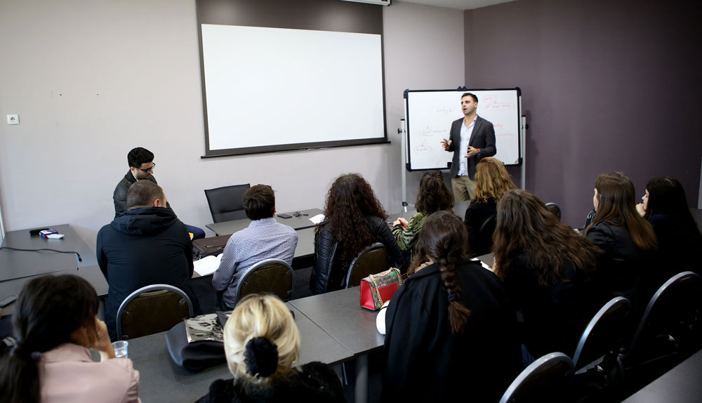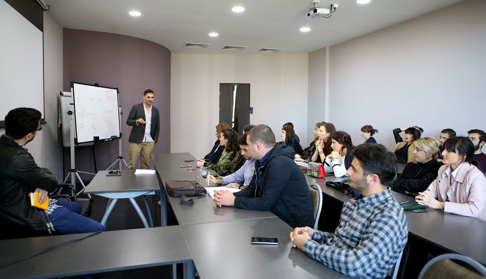 გიორგი ჭკადუამ, სტარტაპის სპეციალისტმა, ბიზნესისა და მართვის სკოლის სტუდენტებისთვის ჩაატარა მასტერკლასი თემაზე: სტარტაპების რისკის მენეჯმენტი იგი სტუდენტებს ესაუბრა ბაზრის იერარქიისა და სტარტაპის სასიცოცხლო ციკლის შესახებ, გააცნო აღნიშნული სფეროს სიახლეები.