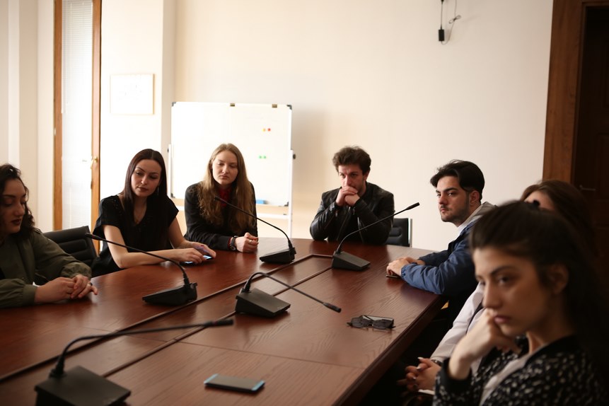 ევროპასთან ინტეგრაციის კომიტეტში გამართულ შეხვედრაზე სტუდენტებმა კომიტეტის თავმჯდომარის მოადგილესთან ბექა ნაცვლიშვილთან ერთად განიხილეს შრომის ინსპექციის, საპენსიო რეფორმისა და სხვა მნიშვნელოვანი სოციალური საკითხები. დასვეს მათთვის საინტერესო შეკითხვები და მიიღეს პასუხები.