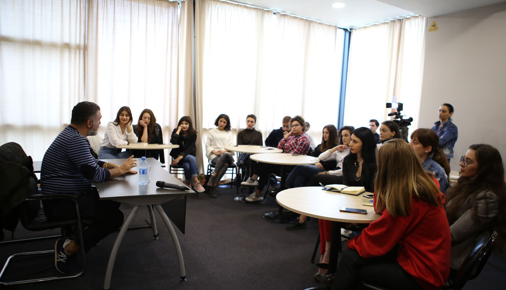 ჟურნალისტიკისა და მასობრივი კომუნიკაციის პროგრამის სასწავლო კურსის - „სამაუწყებლო მედია (პრაქტიკა. რადიო-ტელევიზია)“ ფარგლებში (პედაგოგი თათია პაჭკორია) პირველი და მეორე კურსის სტუდენტებისათვის ცნობილმა ჟურნალისტმა და დოკუმენტალისტმა გოდერძი შარაშიამ მასტერკლასი ჩაატარა.
