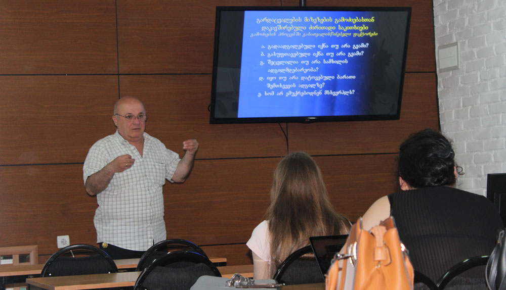 სამართლის კურსს ხელმძღვანელობდა გრიგოლ რობაქიძის უნივერსიტეტის კრიმინალისტიკის ლაბორატორიის ხელმძღვანელი გია დეკანოზიშვილი.