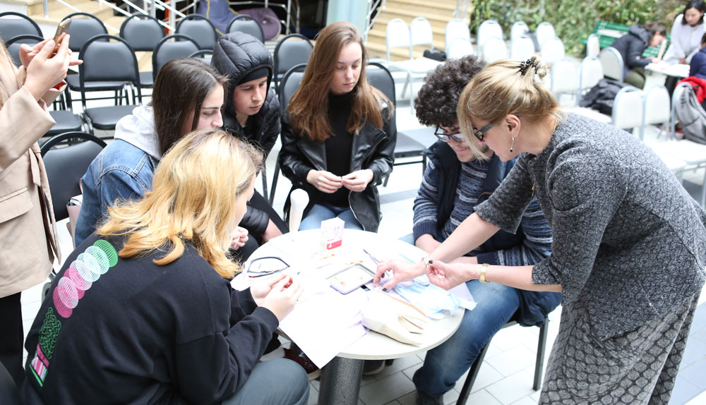 22 თებერვალს სტომატოლოგიის პროგრამის ხელმძღავნელმა ნინო წილოსანმა მოსწავლეებს გააცნო სტომატოლოგის პროფესია, ის კომპეტენციები, რომლებიც უნდა გააჩნდეს პროფესიონალ სტომატოლოგს. მოსწავლეებმა სტუდენტების დახმარებით მცირე სტომატოლოგიური მანიპულაციებიც შეასრულეს.