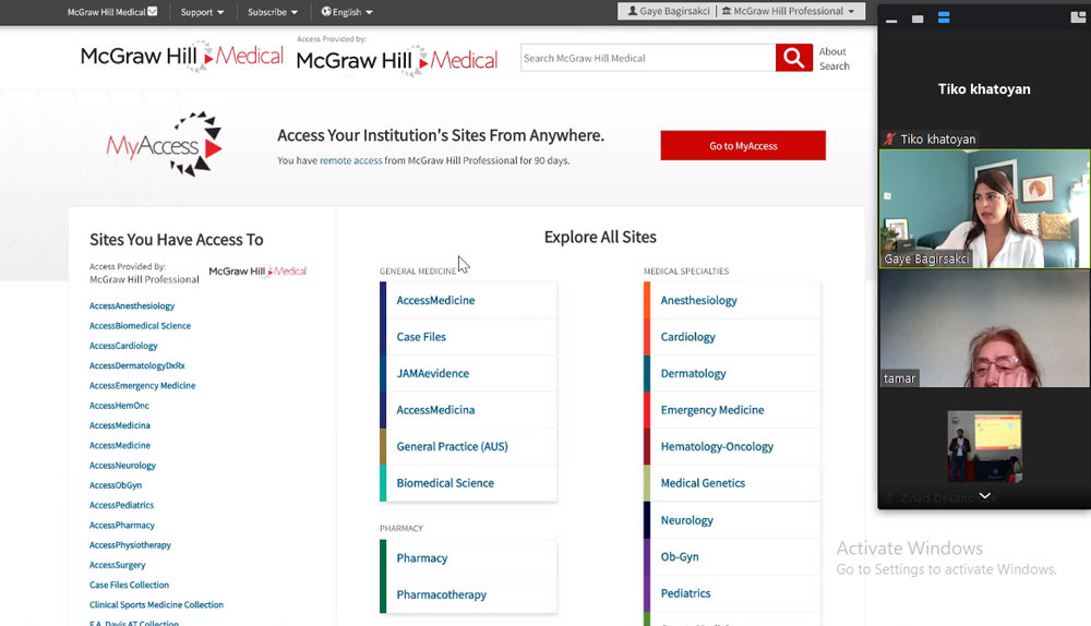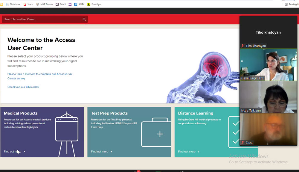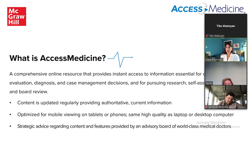 ტრენინგზე დაიგეგმა ერთობლივი საპილოტე პროექტის განხორციელება, რომლის საფუძველზეც უნივერსიტეტის მედიცინის აკადემიურ პერსონალს ექნება შესაძლებლობა ერთი თვის განმავლობაში ჰქონდეს წვდომა სატესტო რეჟიმში McGraw Hill -ის პლატფორმზე - „Acces Medicine“