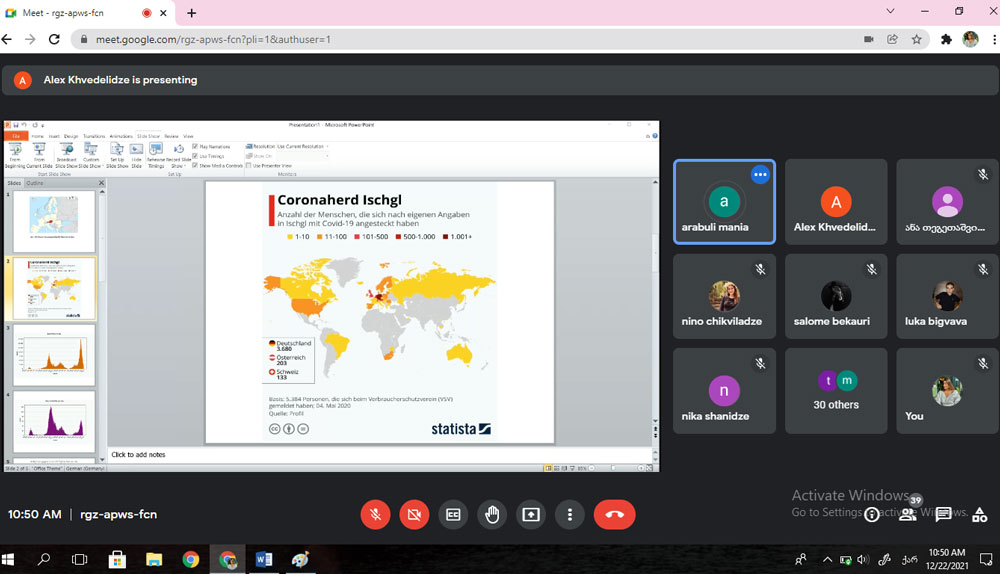 თავიანთ მოხსენებებში სტუდენტებმა აღნიშნულ საკითხებთან ერთად ისაუბრეს კოვიდ -19 -ის გავრცელების, პანდემიასთან ბრძოლის მეთოდებისა და საშუალებების, ვაქცინებისა და მათი მოხმარების პრობლემების შესახებ.
