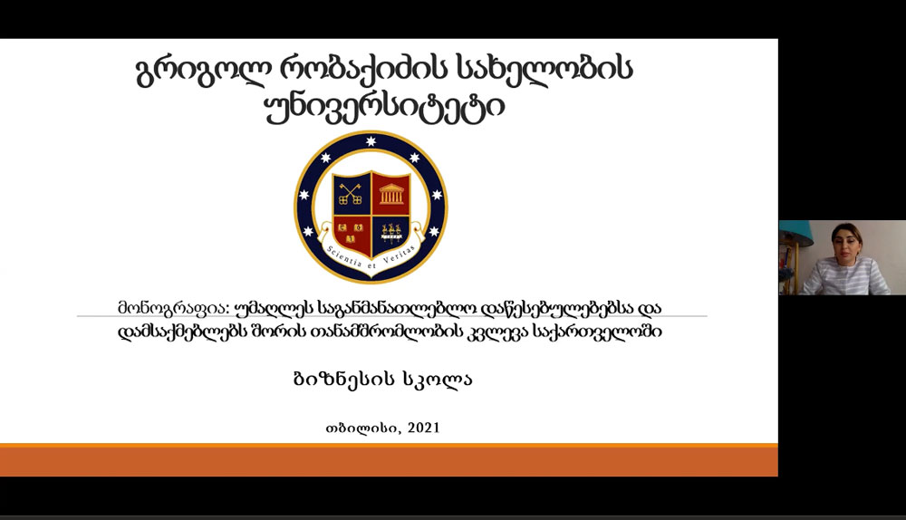 ღონისძიებაში მონაწილობდა 23 სამეცნიერო და საგანმანათლებლო დაწესებულება, მათ შორის, გრიგოლ რობაქიძის სახელობის უნივერსიტეტი. ბიზნესისა და მართვის სკოლამ, პროფესორმა. ნათია დაღელიშვილმა, უნივერსიტეტის სახელით წარადგინა მონოგრაფია „უმაღლეს საგანმანათლებლო დაწესებულებებსა და დამსაქმებლებს შორის თანამშრომლობის კვლევა საქართველოში“.