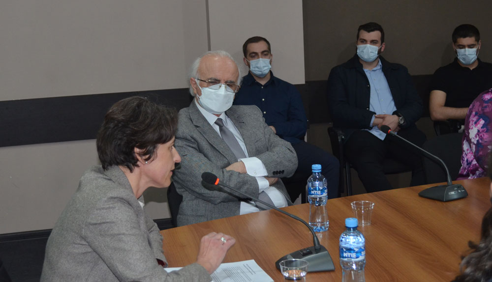 შეხვედრაზე საჯარო მმართველობისა და პოლიტიკის სკოლის დეკანმა, სამართლის დოქტორმა, პროფესორმა გიორგი მირიანაშვილმა სტუმარს სახსოვრად გადასცა მისი ახლად გამოცემული სახელმძღვანელო „ევროპის კავშირის სამართალი“.