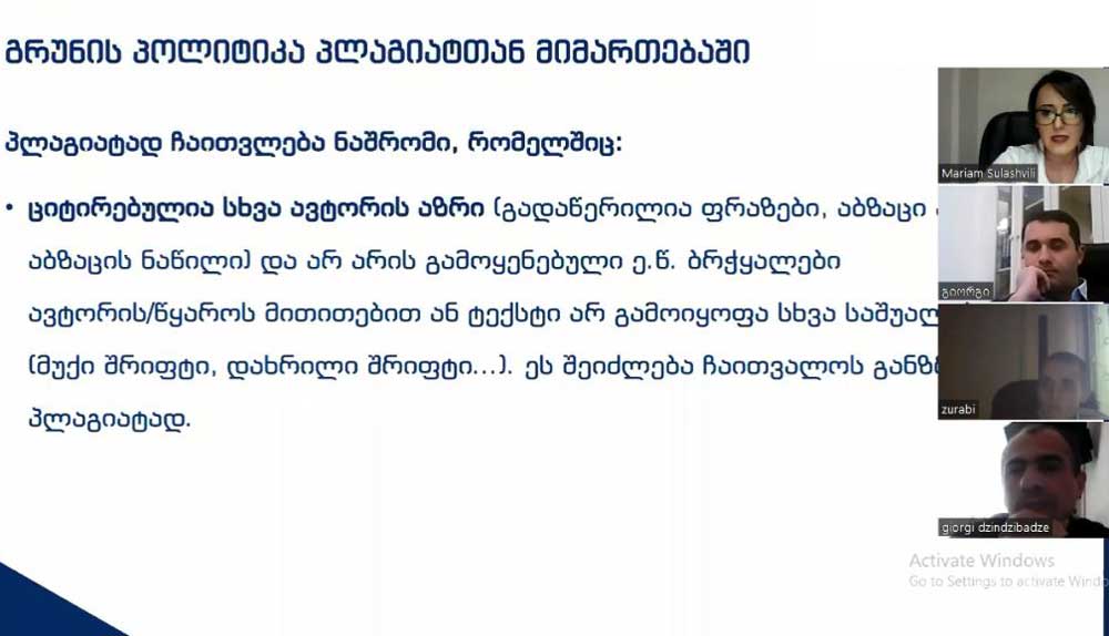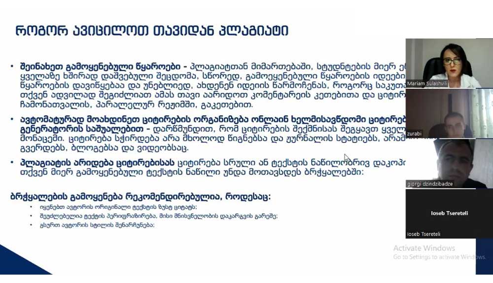 ვებინარის ფარგლებში განხილული იყო პლაგიარიზმის მნიშვნელობა, მისი ვარიაციები და რაც მთავარია აღნიშნული ნებით თუ უნებლიედ დაშვებული დარღვევის თავიდან აცილების საშუალებები.