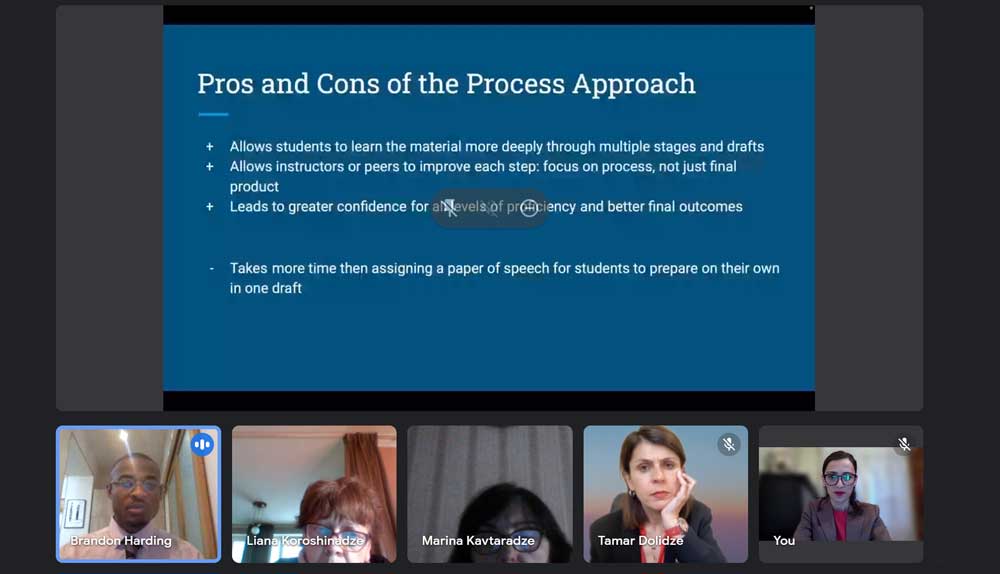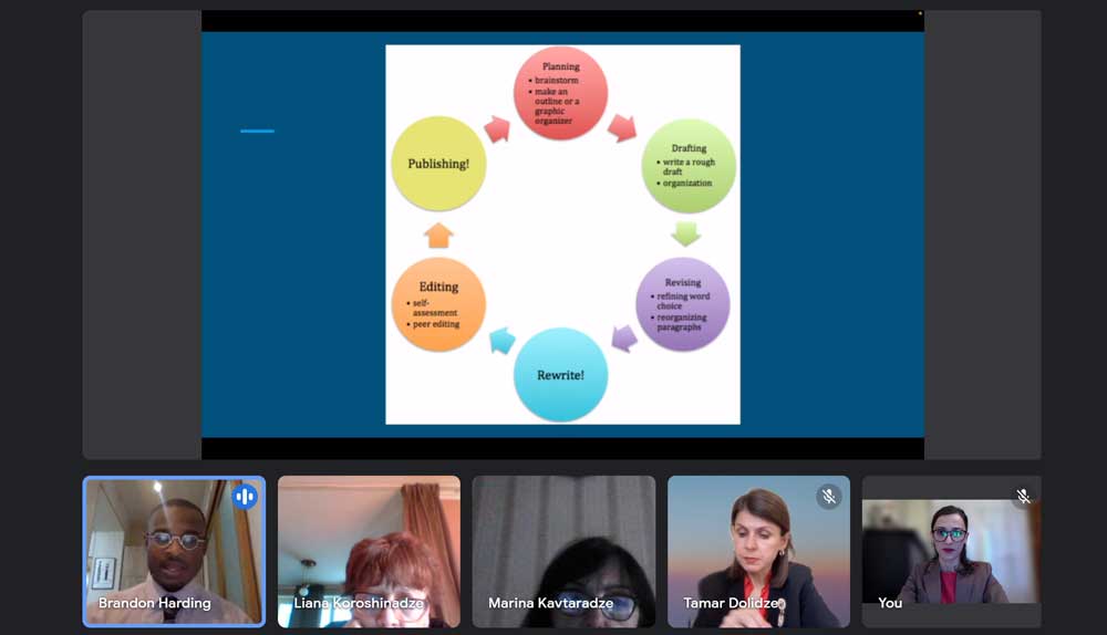 გრუნის ინგლისური ენის ლექტორებისთვის, პროფესიული განვითარების პროგრამის ფარგლებში, ჩატარდა ფასილიტაციის სესია ETA პროგრამის, ამერიკელი მოხალისეს, ბრენდონ ჰარდინგის ფასილიტაციით. მონაწილეებმა განიხილეს ინგლისურის, როგორც უცხოური ენის სწავლების თანამედროვე მეთოდების გამოყენების პრაქტიკა გრიგოლ რობაქიძის უნივერსიტეტში. ეს იყო ETA პროგრამის დაწყებიდან (2022 წლის საგაზაფხულო სემესტრი) განვლილ პერიოდში დაგროვილი გამოცდილების ურთიერთგაზიარება პრობლემებისა და აპრობირებული მეთოდების რეალური შედეგების ჩვენებით.