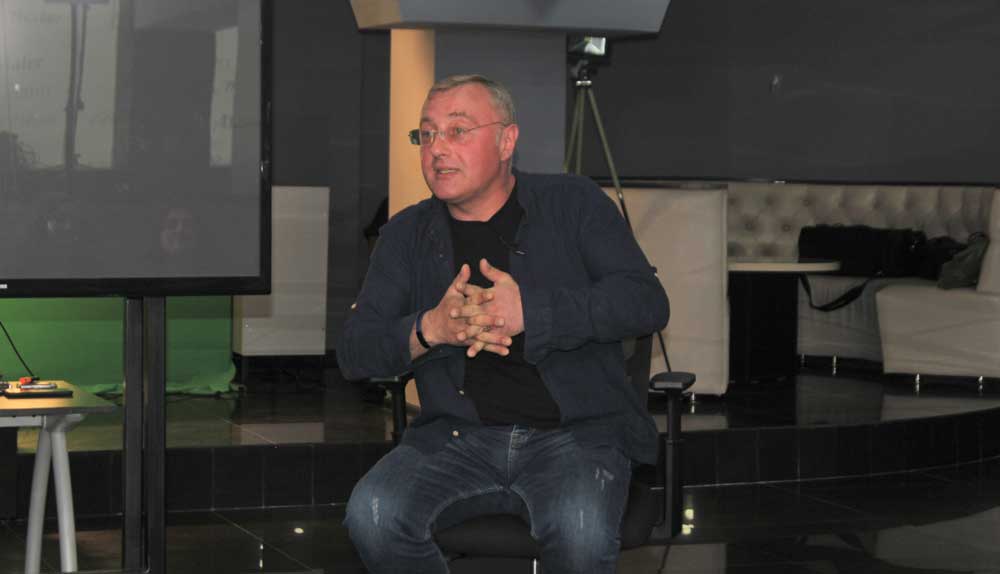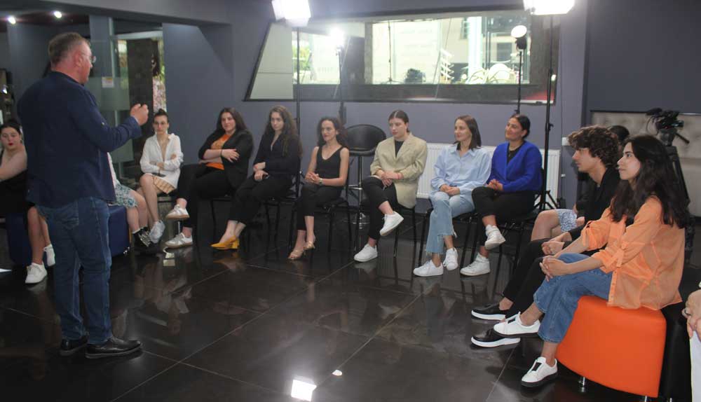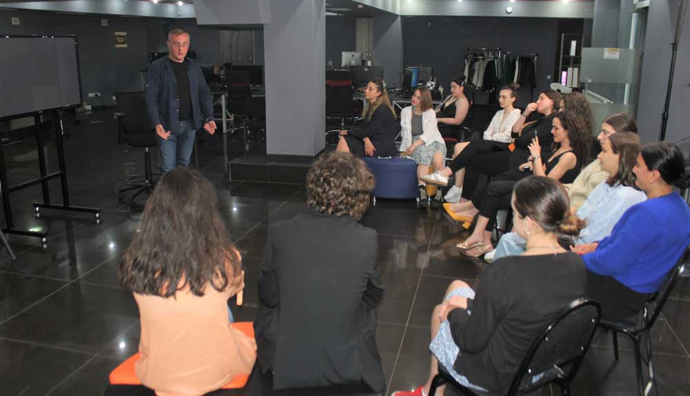 მოწვეულმა სტუმარმა ჟურნალისტიკისა და მასობრივი კომუნიკაციის სტუდენტებთან დეტალურად განიხილა ტელებლოგის, მხატვრული სიუჟეტის, დოკუმენტური ფილმის, სარეკლამო რგოლების, კინოანონსის, პოეზიისა და სხვადასხვა შინაარსის სლოგანის გახმოვანების სპეციფიკა.