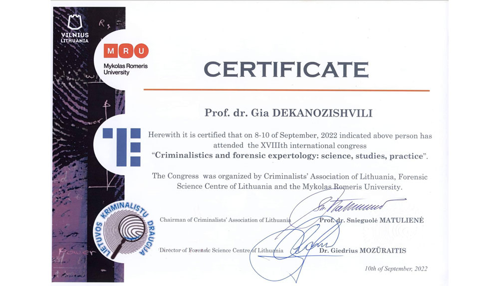 უნივერსიტეტის დელეგაცია სამუშაო ვიზიტით ლიეტუვაში იმყოფებოდა. ვიზიტის მიზანს წარმოადგენდა ლიეტუვის უმაღლესი განათლების სფეროს საქმიანობის გაცნობა და კრიმინალისტთა XVIII საერთაშორისო კონგრესის მუშაობაში მონაწილეობა.
