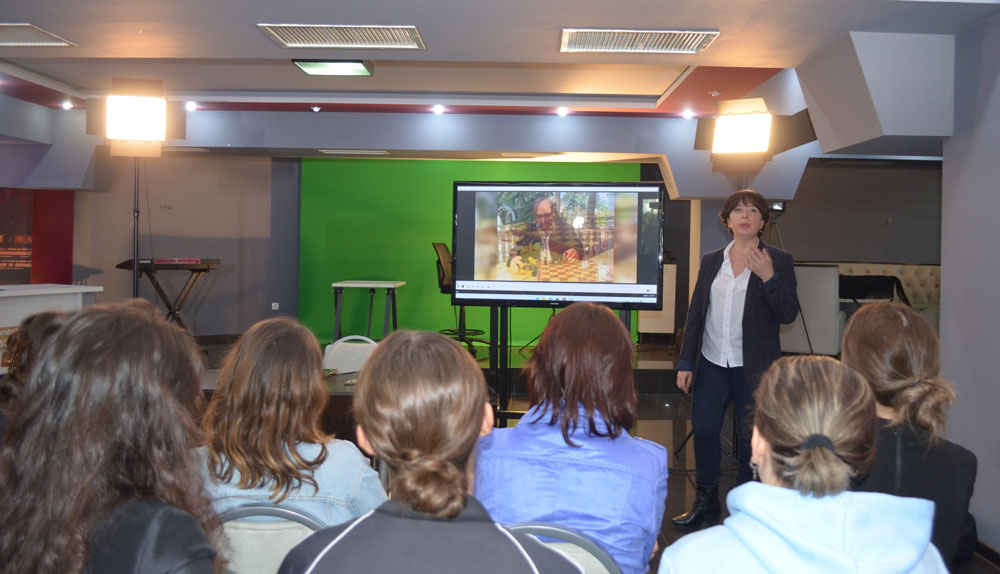 პროფესორმა სტუდენტებთან განიხილა ამ ჟანრის ჟურნალისტური პროდუქტის მომზადების პროცესი, გააცნო მათ ფილმში გამოყენებული საარქივო მასალები და უცნობი ფოტოკადრები, უპასუხა სტუდენტების შეკითხვებს.