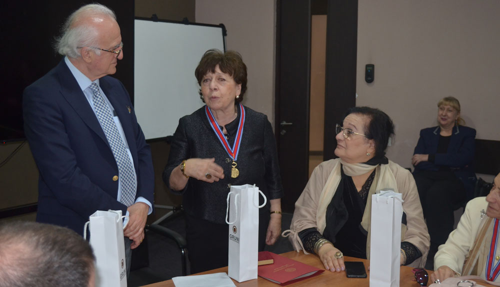 საზეიმო ცერემონიის დასასრულს უნივერსიტეტის რექტორმა, პროფესორმა მამუკა თავხელიძემ განათლებასა და მეცნიერებაში შეტანილი წვლილისათვის გრიგოლ რობაქიძის საიუბილეო მედლით - „ალმა მატერის რჩეული“, დააჯილდოვა ღვაწლმოსილი თანამშრომლები: იზოლდა (დოდო) ადეიშვილი, მზია გოშაძე, გულნარა გურაშვილი, ეკა ბატიაშვილი, ნანა ყუბანეიშვილი, ზაირა მესხი, მაია გოგიაშვილი, მანანა რუსიეშვილი, ტრევორ კარტლიჯი.