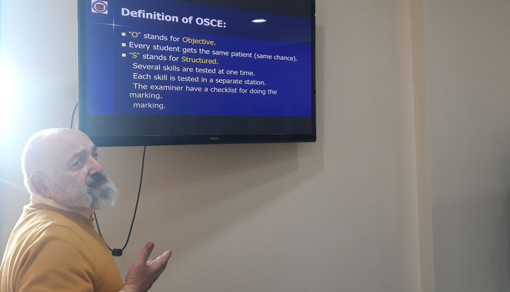20-21 ოქტომბერს ჩატარდა ტრენინგი OSCE-ს ორგანიზაციისა და მართვის საკითხებზე. ტრენინგი მიზნად ისახავდა მსმენელებისთვის ობიექტურად სტრუქტურირებული კლინიკური გამოცდის არსის, მიზნების, სტრუქტურისა და ორგანიზაციული თავისებურებების შესახებ ცოდნის განვითარება, OSCE-ში ჩართულ ყველა სუბიექტისთვის, გამოცდის მიმდინარეობის პროცესში, ადეკვატური მოქმედების უნარის გამომუშავება. ტრენინგში მონაწილეობდა 15 აკადემიური და მოწვეული პერსონალი, 25 შემფასებელი 3 სტანდარტიზებული პაციენტი.