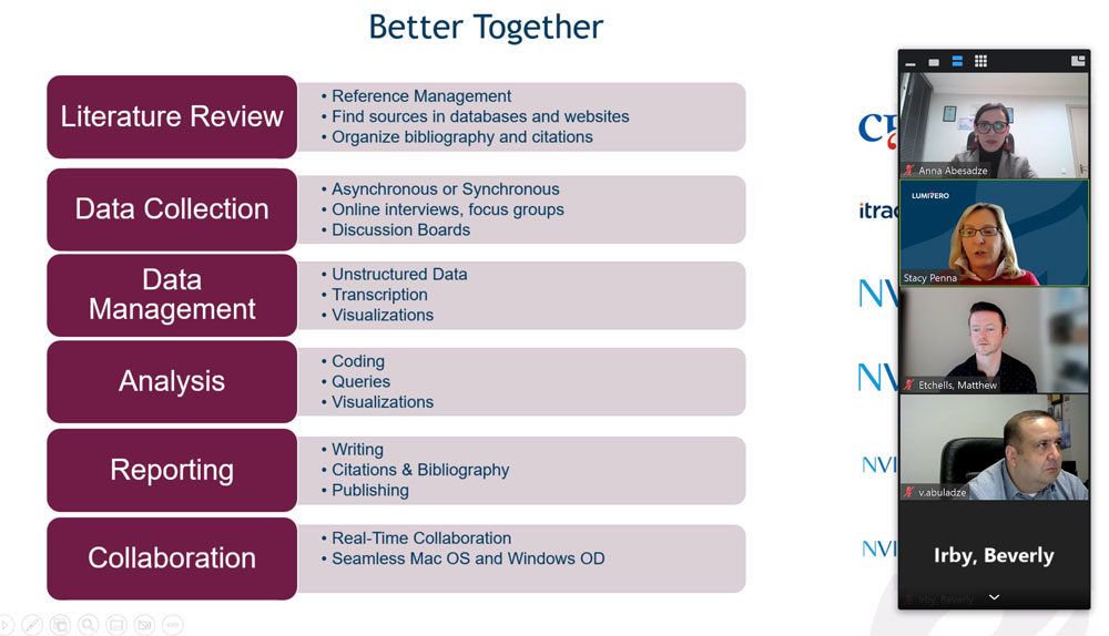 გრძელდება ტეხას ა&მ უნივერსიტეტის კვლევითი სემინარები. 2023 წლის 23 თებერვალსა და 9 მარტს გრუნის აკადემიური პერსონალი და ახალგაზრდა მკვლევრები დაესწრნენ სემინარების - „Paths to Publication”, მეორე და მესამე ლექციას: „კვლევის მონაცემთა მენეჯმენტი“ და „Citavi & Nvivo პროგრამების გამოყენება კვლევითი მიზნებისთვის“.