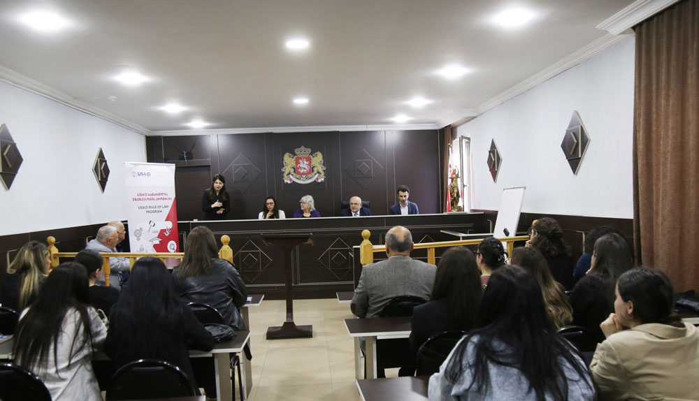 მოსამართლეების შეხვედრა სტუდენტებთან და აკადემიურ პერსონალთან უზრუნველყო USAID-ის სამართლის უზენაესობის პროგრამის რეგიონალური ჰაბის იურისტმა ირინა ხახუტაიშვილმა და ბათუმის წარმომადგენლობის ხელმძღვანელის მოადგილემ ხარისხის უზრუნველყოფისა და სტუდენტური მხარდაჭერის საკითხებში გულო თურმანიძემ.
