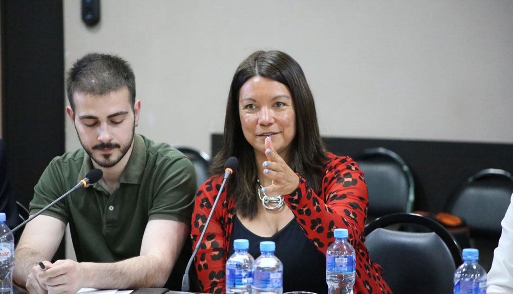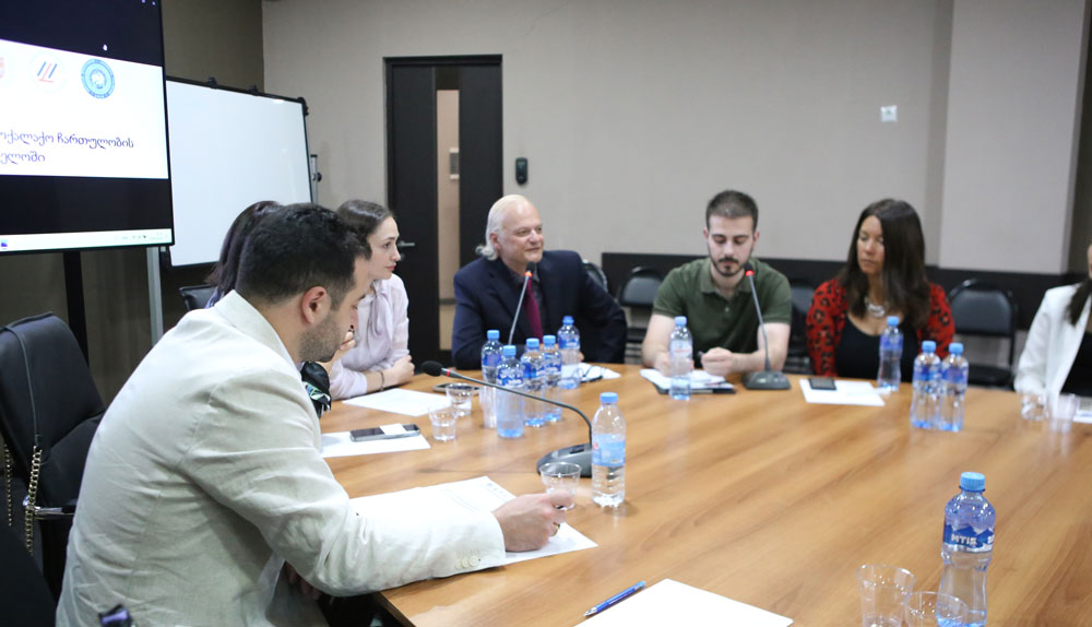 საქართველოში ნაფიც მსაჯულთა მიღწევები და გამოწვევები განიხილეს INL-ის უფროსმა მრჩეველმა მართლმსაჯულების საკითხებში პატრიცია ვილდერმუტმა, თბილისის საქალაქო სასამართლოს მოსამართლემ ეკატერინე გაბრიჩიძემ, ადვოკატმა ლევან მახარაშვილმა და პროკურორმა მარიკა გოგოხიამ.