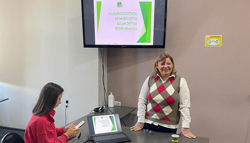 სტუდენტებთან შეხვედრაზე სპეციალისტმა ისაუბრა საფეხმავლო და სამედიცინო ტურიზმში ნორდიული სიარულის გამოყენების შესახებ. განხილული იქნა ნორდიული სიარულის ისტორია, ფედერაციის საქმიანობა და მისი მიმართულებები, სკანდიტურების ცნება და მისი უპირატესობები. სტუმარმა ჯოხების გამოყენებით სტუდენტებისთვის ჩაატარა საჩვენებელი მასტერკლასი ნორდიულ სიარულში.