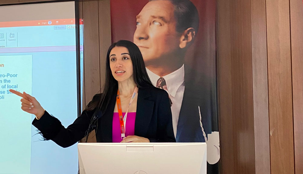 გუგული თურმანიძემ კონფერენციის სამუშაო სესიაზე წარადგინა სამეცნიერო ნაშრომი “ღირსეული დასაქმება, როგორც მდგრადი განვითარების მე-8 მიზნის მიღწევის გარანტი (პრობლემები და პერსპექტივები საქართველოში)“, რომლის თანაავტორიც გახლავთ საჯარო მმართველობისა და პოლიტიკის სკოლის ასისტენტი, დოქტორანტი ლევან მესხიშვილი.