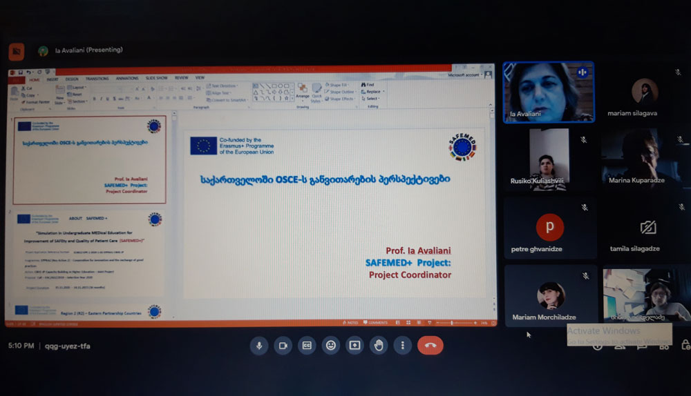 შეხვედრას უძღვებოდა საგანგებოდ მოწვეული ლექტორი, თბილისის სახელმწიფო უნივერსიტეტის სრული პროფესორი - ია ავალიანი, რომელიც, ამავდროულად, არის ნოემბერში დასრულებული პროგრამა ERASMUS-ის პროექტის „SAFEMED+“-ის კოორდინატორი. აღნიშნული პროექტი საქართველოს საუნივერსიტეტო სივრცეში OSCE-ს ევროპული გამოცდილების დანერგვის საკითხებს განიხილავდა.