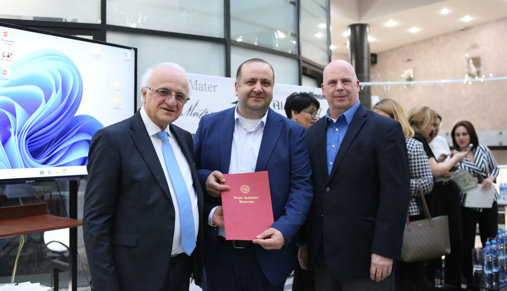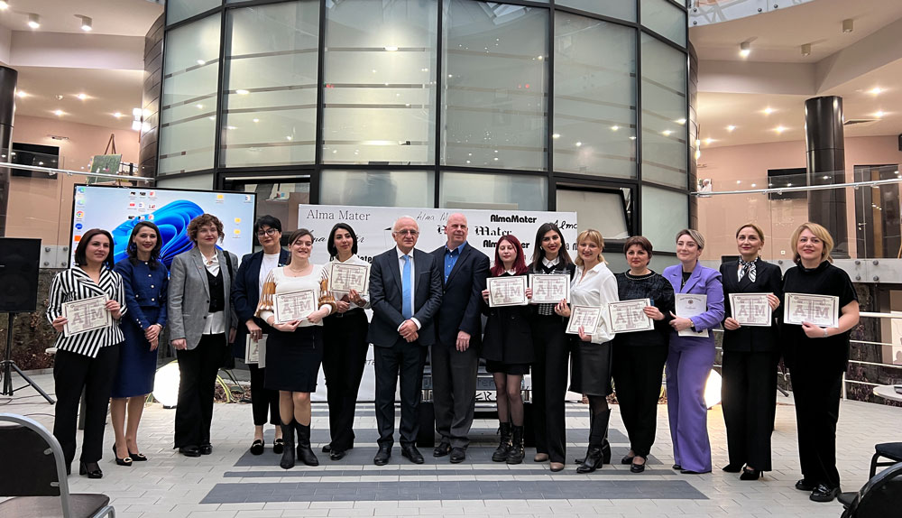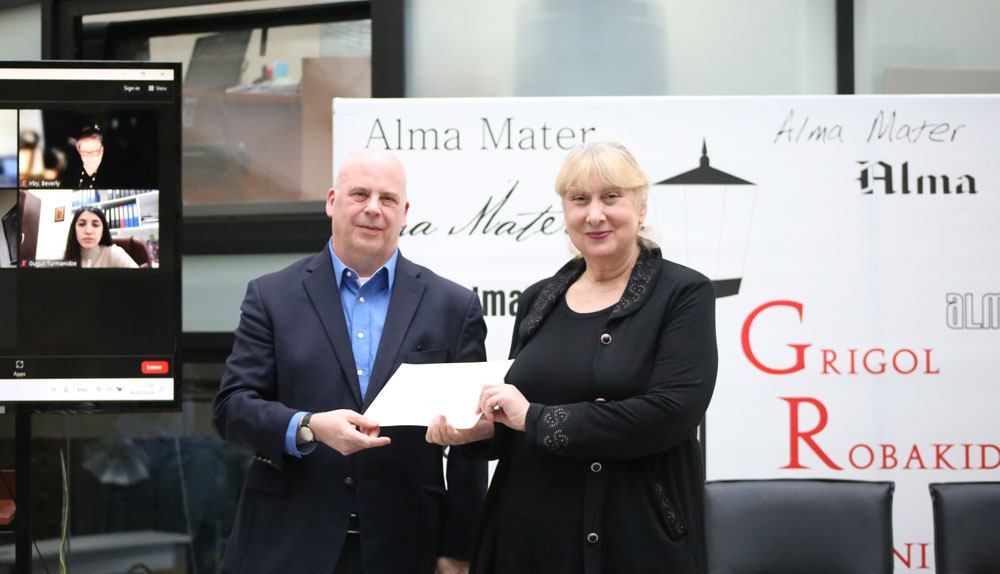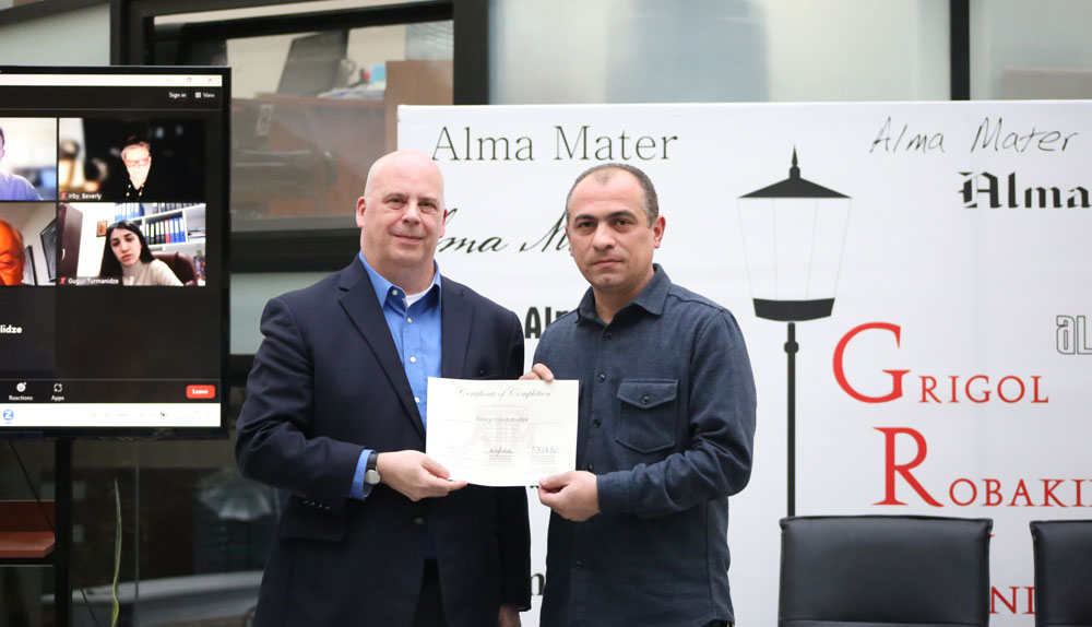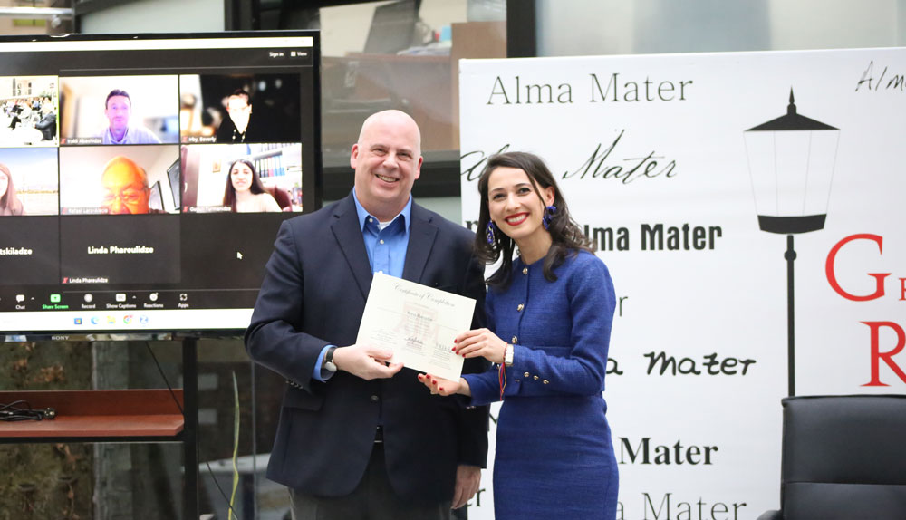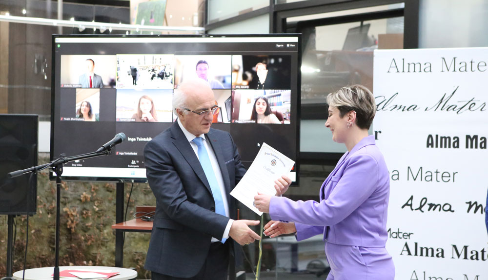 რექტორმა მამუკა თავხელიძემ ნაყოფიერი თანამშრომლობისთვის მადლობის სიგელი გადასცა ტესოლ პროგრამის წინა სემესტრის კურსდამთავრებულს, ნატო ჯავახიას, რომელიც ამ ნაკადზე მოხალისე მენტორად ჩაერთო ტესოლ პროგრამაში და დაეხმარა არაერთ კურსდამთავრებულს.