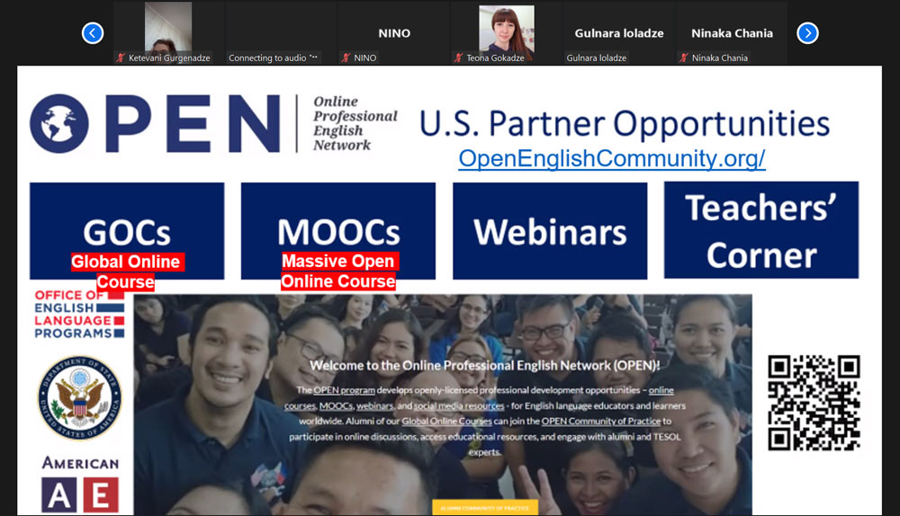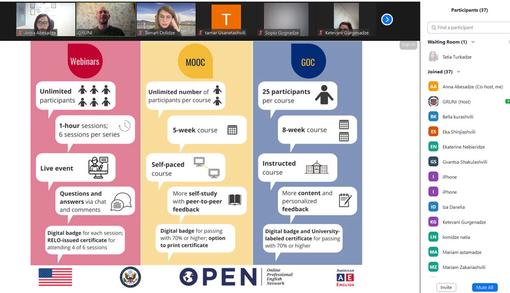 ვირტუალური სესია გახსნა გრიგოლ რობაქიძის უნივერსიტეტის რექტორის მრჩეველმა ანა აბესაძემ, რომელმაც ისაუბრა აღნიშნული რესურსების მნიშვნელობაზე და მასწავლებლებს აცნობა გრუნის გადაწყვეტილება სამომავლო თანამშრომლობის შესახებაც.