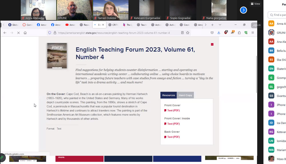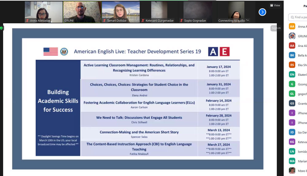 ღონისძებას, რომელსაც უძღვებოდა გრუნის ინგლისური ენის ექსპერტი, მაიკ მენსფილდი, ესწრებოდნენ უნივერსიტეტის პარტნიორი სკოლების ინგლისური ენის მასწავლებლები თბილისიდან და საქართველოს სხვადასხვა რეგიონიდან, გრუნის მიერ დაფინანსებული ტესოლ პროგრამის კურსდამთავრებულები და უნივერსიტეტის ინგლისური ენის პედაგოგები.