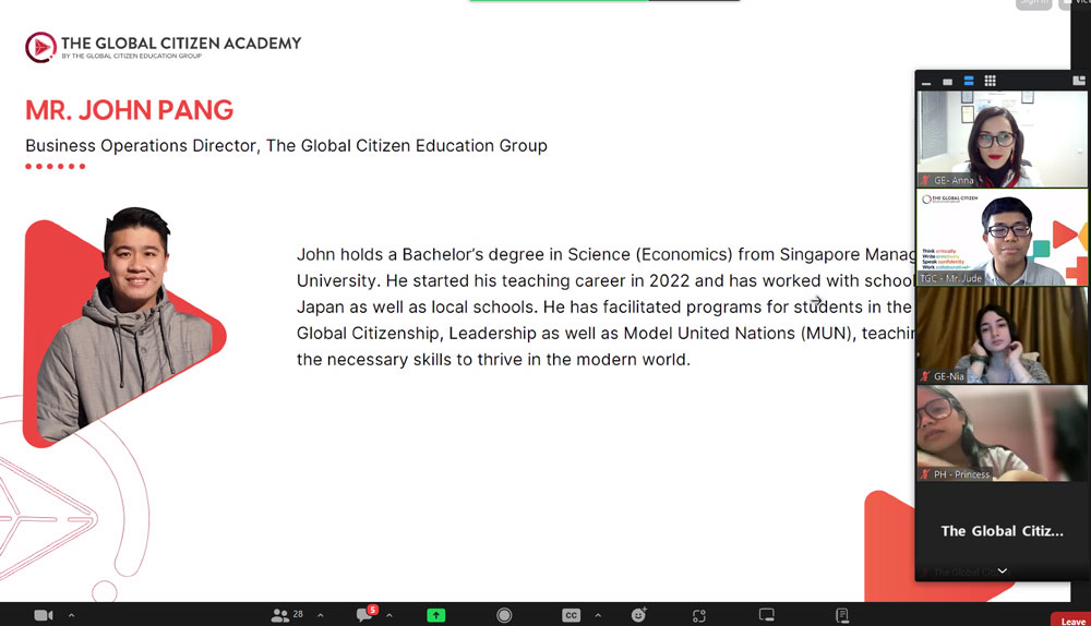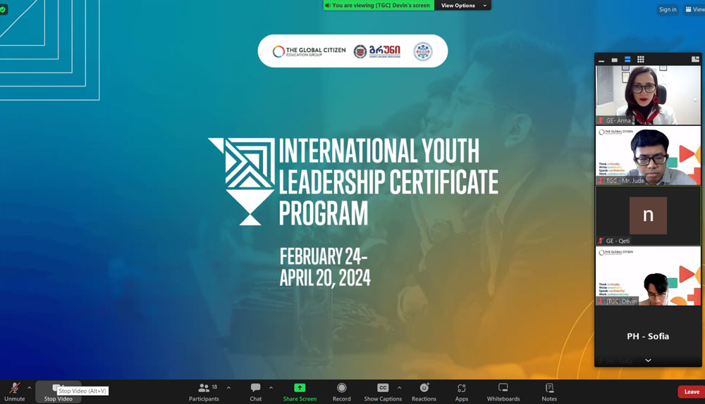 პროგრამა გაგრძელდება 2024 წლის 24 თებერვლიდან 20 აპრილამდე. პირველი სესია, რომელსაც უძღვებოდა ჯონ ფანგი, The Global Citizen Education Group-ის ბიზნეს ოპერაციების დირექტორი, ეხებოდა ეფექტურ ლიდერობას.