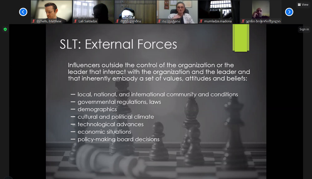 ტრენინგი, რომელსაც 40 საჯარო და კერძო სკოლის დირექტორი ესწრებოდა, უძღვებოდა ტეხას ა&მ უნივერსიტეტის რეგენტი პროფესორი აკადემიურ საკითხებში, უფროსი ასოცირებული დეკანი, განათლების ლიდერობის კვლევის ცენტრის დირექტორი, დოქტორი ბევერლი ირბი.