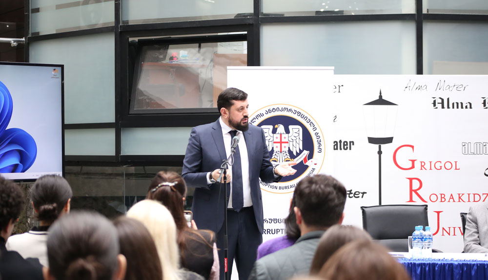 ანტიკორუფციული ბიუროს უფროსმა სტუდენტებისთვის საჯარო ლექცია ჩაატარა, განიხილა ბიუროს საქმიანობის პრინციპები, მექანიზმები და ამ მიმართულებით არსებული საერთაშორისო გამოცდილება, ახალგაზრდებს გააცნო საქართველოს ეროვნული ანტიკორუფციული სტრატეგია.