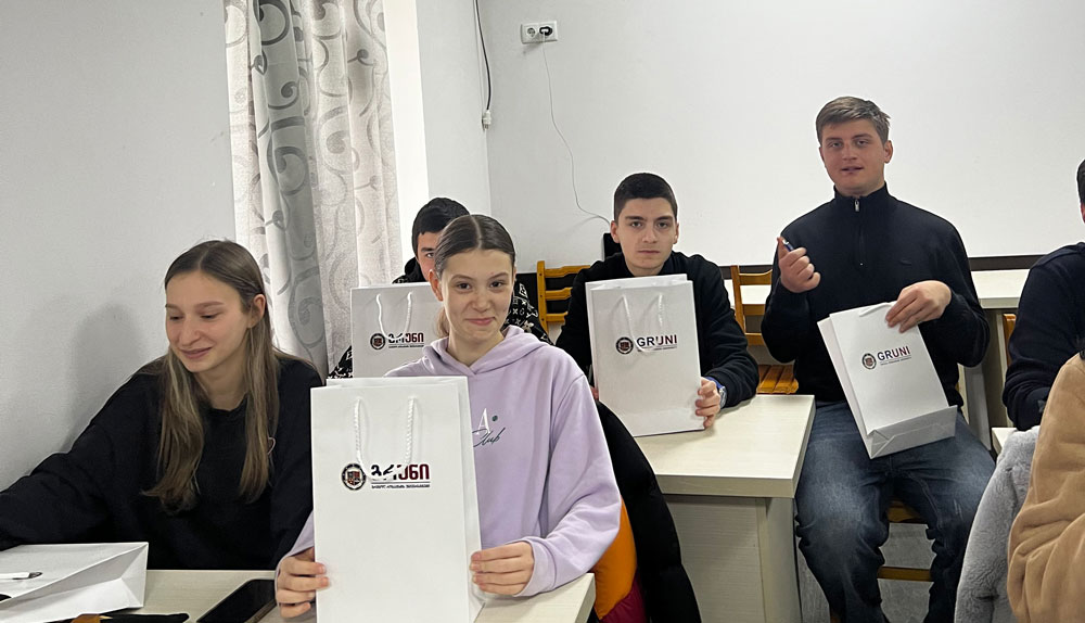 შეხვედრის დასასრულს სტუდენტებმა მოსწავლეებს სამახსოვრო საჩუქრები გადასცეს.