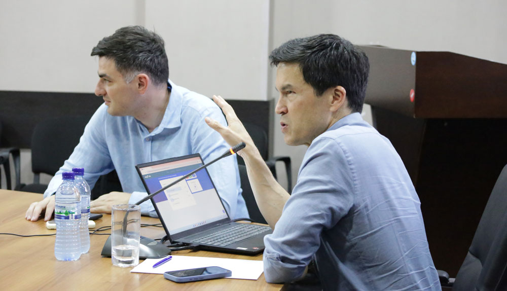 ლექციის ფარგლებში გაიმართა საინტერესო დისკუსია სტუდენტებთან. სტუმარმა მსმენელებს საინტერესო შეკითხვებიც შესთავაზა სპეციალური ონლაინპლატფორმის გამოყენებით, სადაც ყველა მონაწილეს საკუთარი მობილური ტელეფონით შეეძლო მონაწილეობის მიღება.