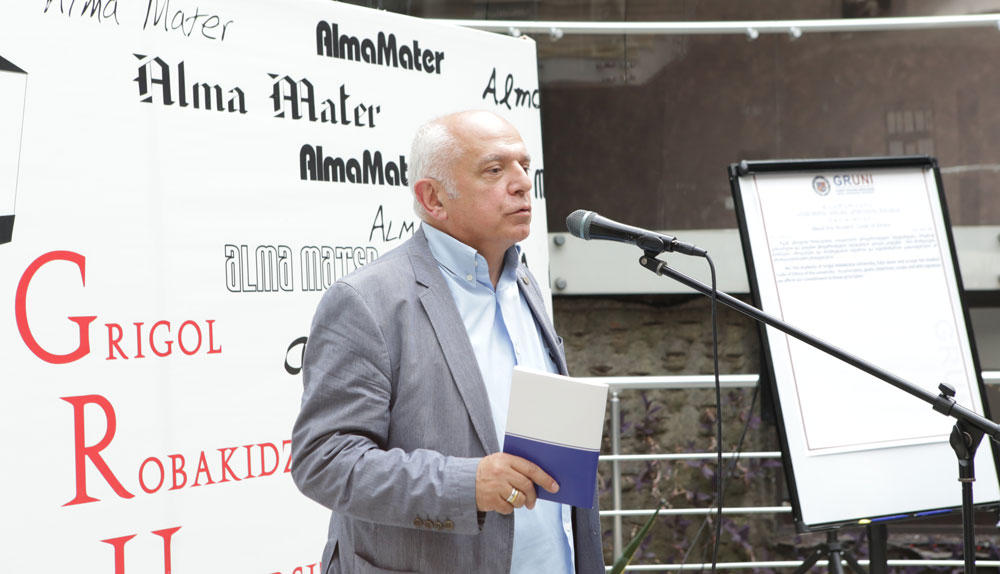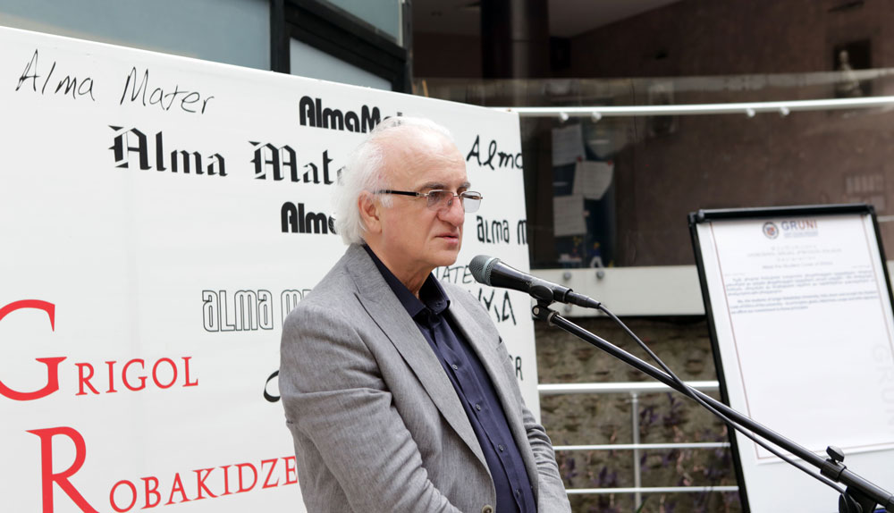 წარდგენაზე დამსწრე საზოგადოებას მიესალმა გრიგოლ რობაქიძის სახელობის უნივერსიტეტის რექტორი, პროფესორი, მამუკა თავხელიძე;