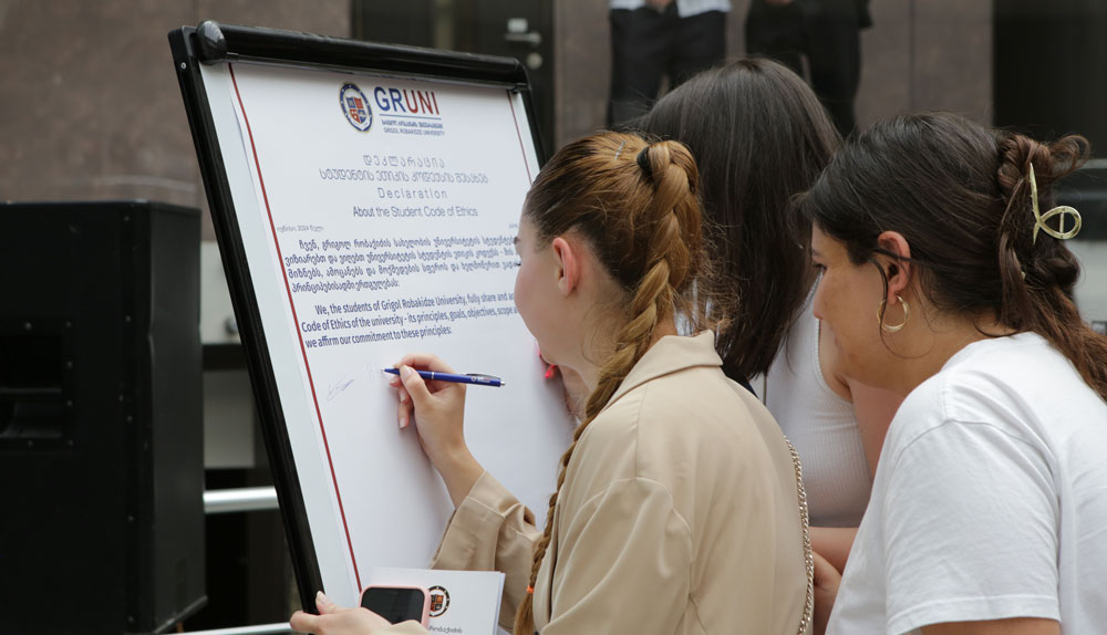 წარდგენის ფარგლებში უნივერსიტეტის სტუდენტებმა კოდექსის მიღება/დეკლარირება ხელმოწერებით დაადასტურეს.