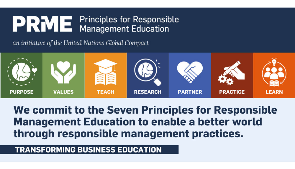 UN PRME -ის წევრობით უნივერსიტეტი ერთგულებას უცხადებს პასუხისმგებლიანი მენეჯმენტის განათლების 7 პრინციპს, რათა ხელი შეუწყოს საუკეთესი სამყაროს შექმნას.