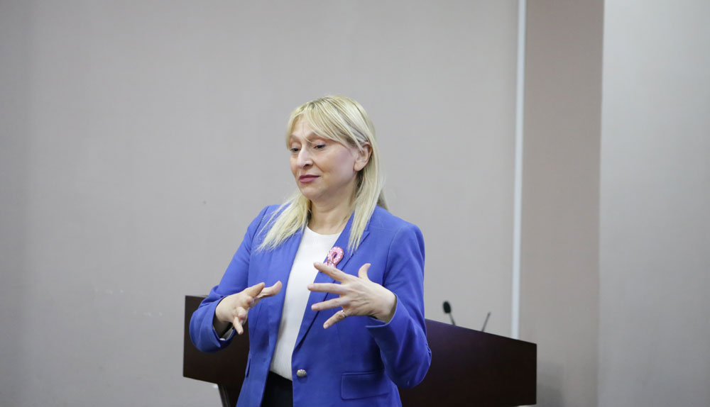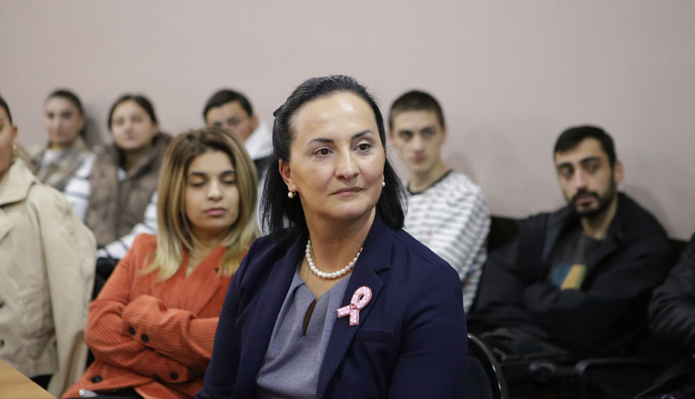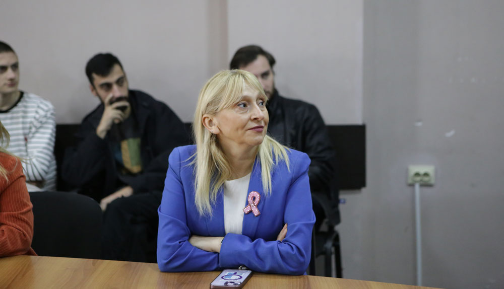 ნინო ციხისელმა სტუდენტებს გააცნო ორგანიზაციის საქმიანობის ძირითადი მიმართულებები და ისაუბრა იმ მიღწევებზე, რასაც ონკოპაციენტებთან დაკავშირებით ჯანდაცვის სამინისტროსთან აქტიური თანამშრომლობის შედეგად მიაღწიეს.