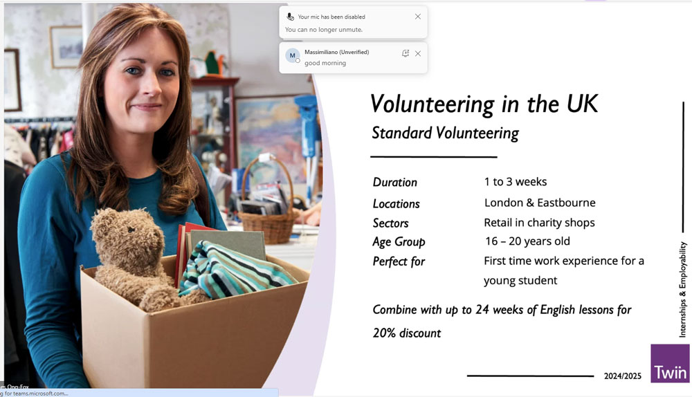 ხუთშაბათს, 24 ოქტომბერს, დიდ ბრიტანეთში გაიმართა საერთაშორისო ონლაინვებინარი - Twin's Internships & Career Skills, რომელზეც განიხილეს სტუდენტთა სტაჟირების, დასაქმებისა და კარიერული განვითარების საკითხები, ასევე, Erasmus+, Turing Scheme და PCTO დაფინანსებული პროექტები.