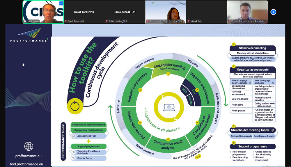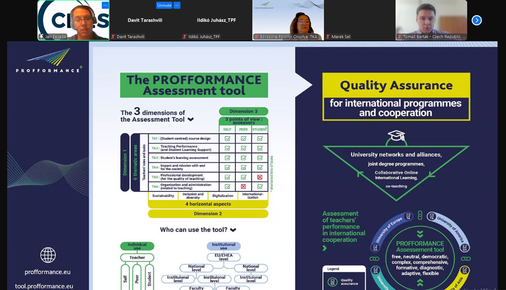 11 ნოემბერს ჩატარდა საერთაშორისო ონლაინვებინარი PROFFORMANCE+ (2022-2025), რომელსაც ინფორმაციული ტექნოლოგიებისა და სტუდენტთა და კურსდამთავრებულთა მხარდაჭერის ცენტრების თანამშრომელთა ჯგუფი ესწრებოდა.