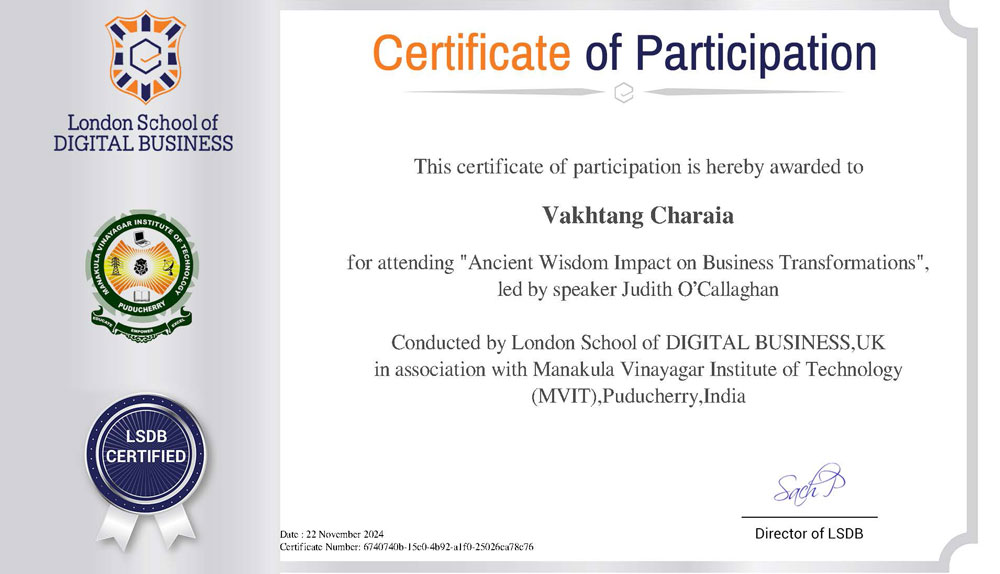 2024 წლის 22 ნოემბერს გრუნის პროფესორებმა და სტუდენტებმა მონაწილეობა მიიღეს London School Of DIGITAL BUSINESS-ის მიერ ორგანიზებულ ონლაინტრენინგში: „Ancient Wisdom Impact on Business Transformations“.