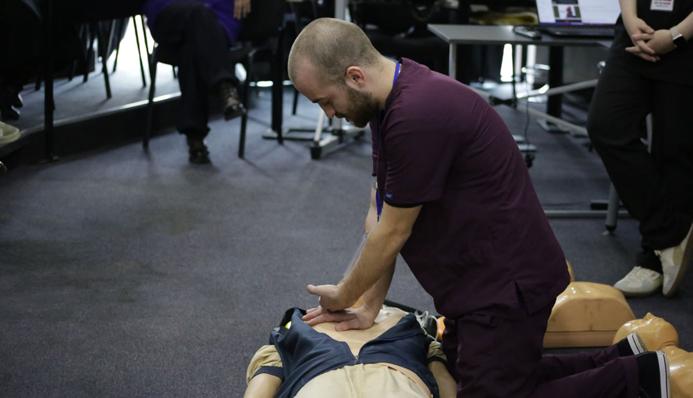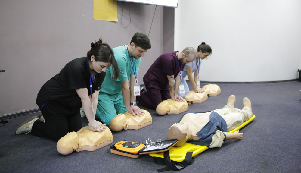 გრუნის მიერ მოწვეულმა ტრენერებმა ტრენინგის მონაწილეებს მულაჟებზე აუხსნეს გადაუდებელი შემთხვევების დროს სწორი რეაქცია და სწრაფი მოქმედება, რომელიც გადამწყვეტი ფაქტორია ადამიანის სიცოცხლის გადასარჩენად, შემდეგ კი უნივერსიტეტის აკადემიურმა და ადმინისტრაციულმა პერსონალმა პრაქტიკულად შეასრულა ტრენერების მიერ მიღებული მითითებები.